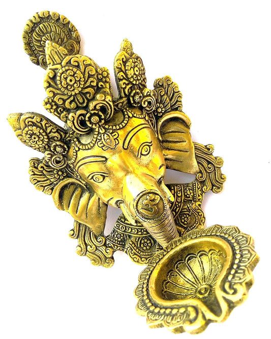 Brass Ganesha Idol with Lamp on Trunk: For Diwali, Home Decor & Wall Gifts.