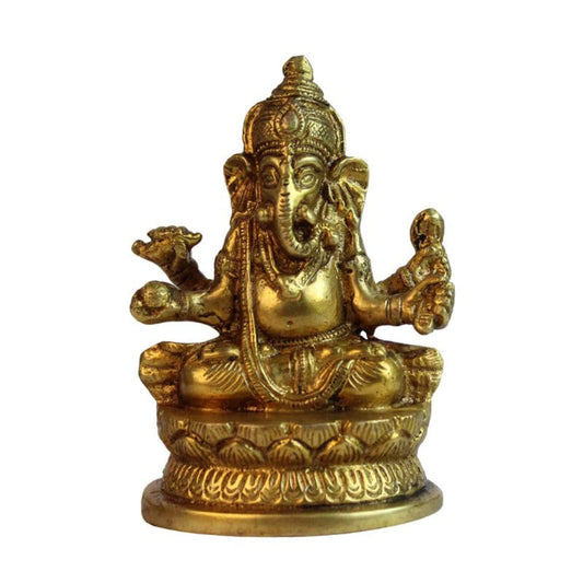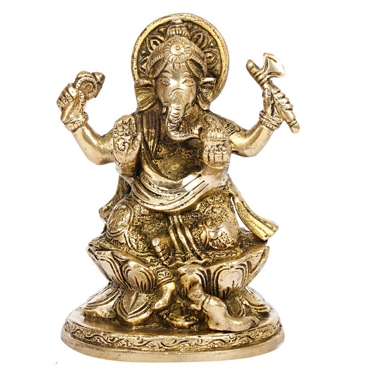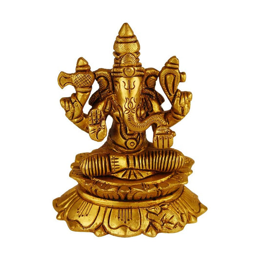Brass Ganesha Idol Sitting on Lotus – 5 Inch Ganpati Murti for Home & Puja Decor