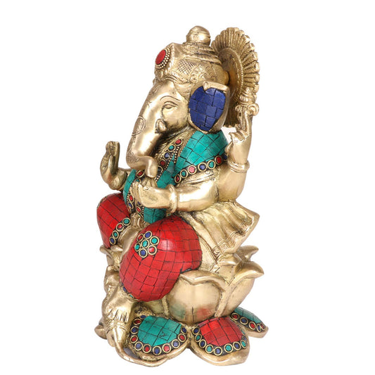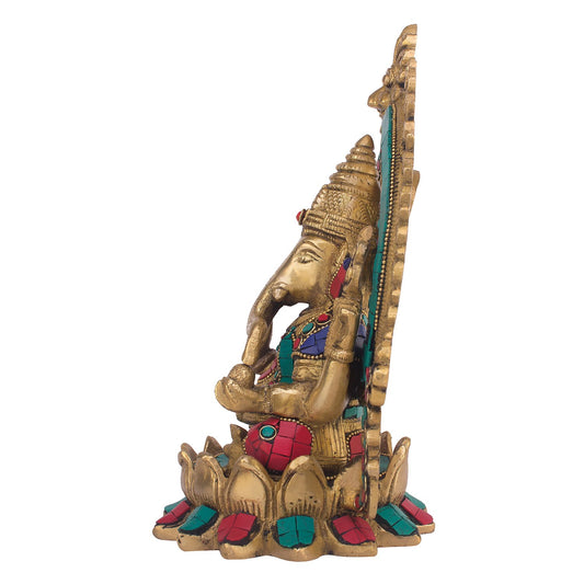 Brass Ganesha Idol On Lotus for Home Decoration Ganpati Statue Murti for Gift Height 12 Inch Weight 7 Kg Color Multicolor