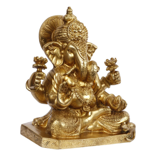 Brass Ganesha Idol for Home Decoration Ganpati Statue Murti for Gift Height 9 Inch Weight 4.4 Kg Color Gold