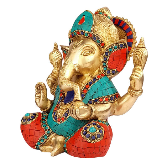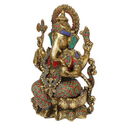 Brass Ganesha Idol for Home Decoration Ganpati Statue Murti for Gift Height 9 Inch Weight 4.4 Kg Color multicolor
