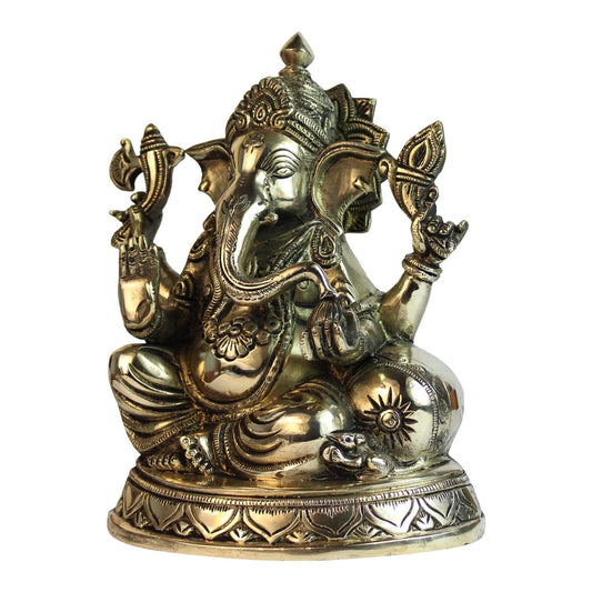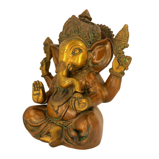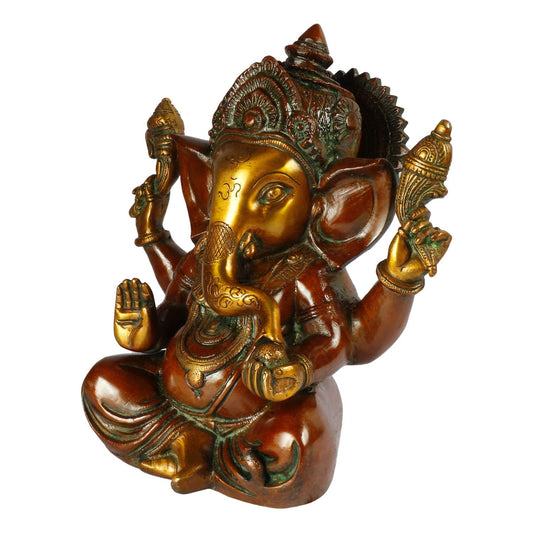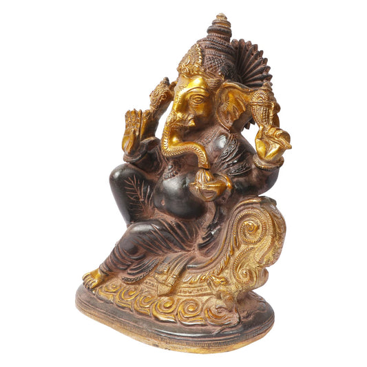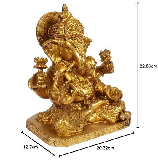 Brass Ganesha Idol for Home Decoration Ganpati Statue Murti for Gift Height 9 Inch Weight 3.7 Kg Color Antique Gold