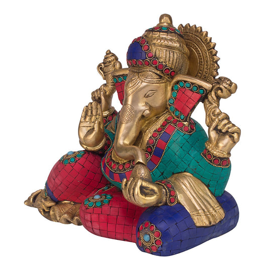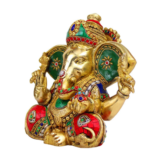 Brass Ganesha Idol for Home Decoration Ganpati Statue Murti for Gift Height 9 Inch Weight 3.5 Kg Color Multicolor