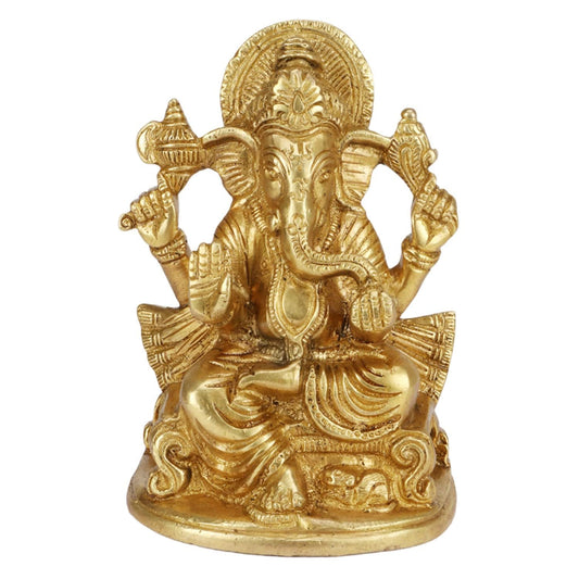 Brass Ganesha Idol – Exquisite Sitting Ganpati Murti for Home, Office & Gift, 5 Inch