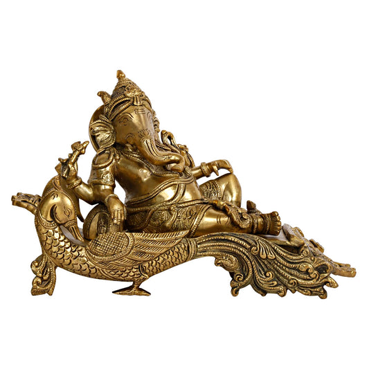 Brass Ganesha Idol on Peacock Singhasan for Home Decoration Ganpati Statue Murti for Gift Height 7.5 Inch Weight 4.5 Kg