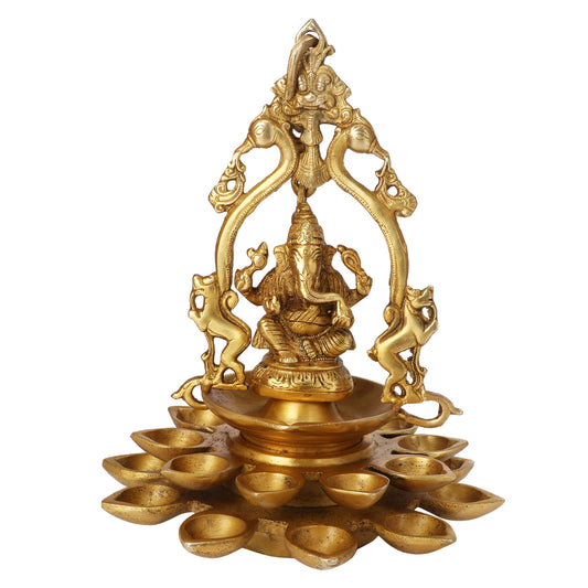 Brass Lord Ganesh Idol with Multi Diya: Home Entrance Decor, Diwali Gift