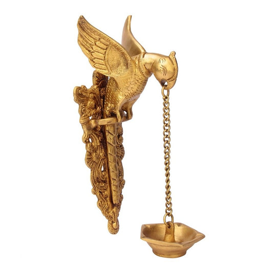 Brass Metal Diya for Home Entrance Decor Puja Room Parrot Hanging Chain Oil Lamp Wall Deepak Showpiece