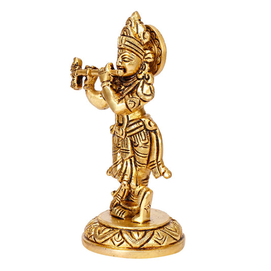 Brass Lord Krishna Idol with Flute Kanha Ji ki Murti Idols For Puja Decor Gift Gold Color Height 6 Inches