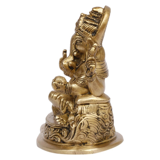 Brass Mangalkari Ganesha Statue Idol Ganesh Murti Home Decor for Puja Height 7 Inch.