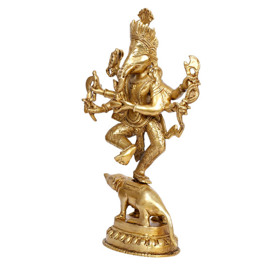 Brass Lord Ganesha Bhagwan Idol Ganesh on Rat Mooshak Ganpati Statue for Home Entrance Living Room Decor Height 12 Inch