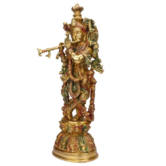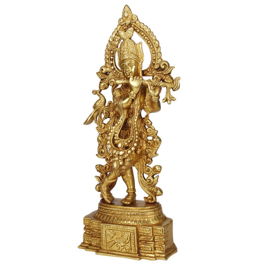Brass Lord Krishna Idol Statue Krishna Sculpture Decorative Showpiece for Home Office Decor Height 15 Inches Multicolor
