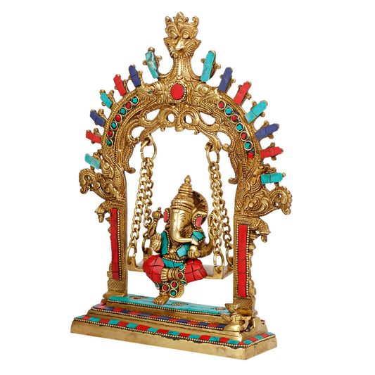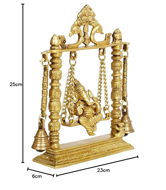Brass Lord Ganesha Jhula Idol for Gift Ganpati Statue Puja Home Decor Office Decoration Vinayaka Murti Jhoola Swing 1...
