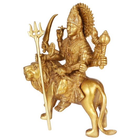 Brass Maa Durga Idol Sitting On Lion Ma Sherwali Murti Vaishno Devi Statue for Home Mandir Gift Navratra Puja 9.5 Inch