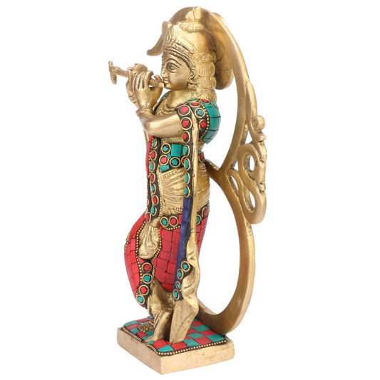 Brass Lord Om Krishna Statue Krishan Playing Flute Multicolor Home Decor for Living Room Pooja Gift Item Height 8.75 ...