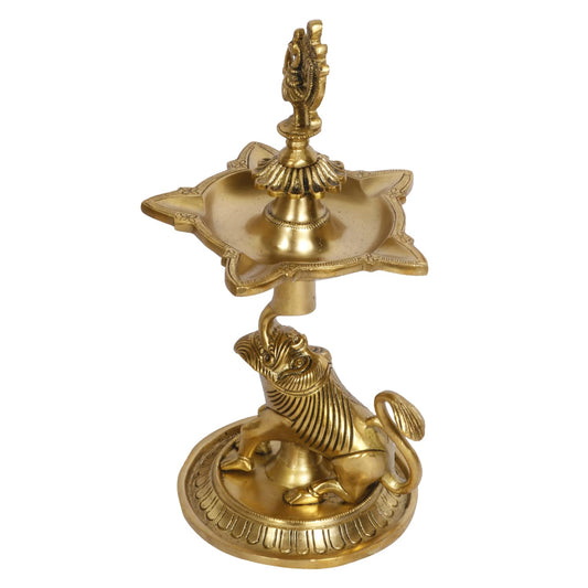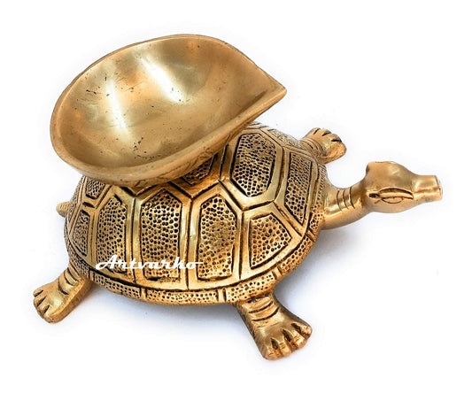 Brass Oil Lamp Diya on Tortoise: Ideal for Temple and Home Decor, Can be used as a Camphor/Kapur Burner in Gold Color