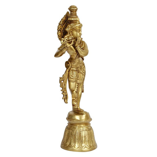 Brass Murli Krishna Murti in Gold Color Height 3 Inch
