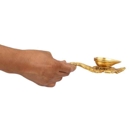 Brass Oil Lamp Diya Deepam for Temple Aarti Deepak Pooja Camphor Kapoor Kapur Burner Hand held Dia Puja Jyot
