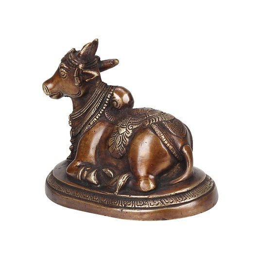 Brass Nandi Shiv Ji Parvati Vehicle Bull Statue Idol Shiva Devotee Puja and Decor 5.5 Inches Copper Gold Color 1 Pcs