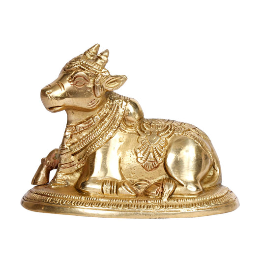 Brass Nandi Shiv Ji Parvati Vehicle Bull Statue Idol Shiva Devotee Puja and Decor 5.5 Inches Gold Color 1 Pcs