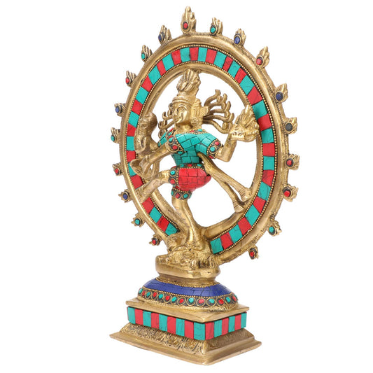 Brass Natraja Statue Idol of Lord Shiva Ji Dancing Natraj Murti for Temple Mandir Home Décor Gift 9.5 Inch Multicolor