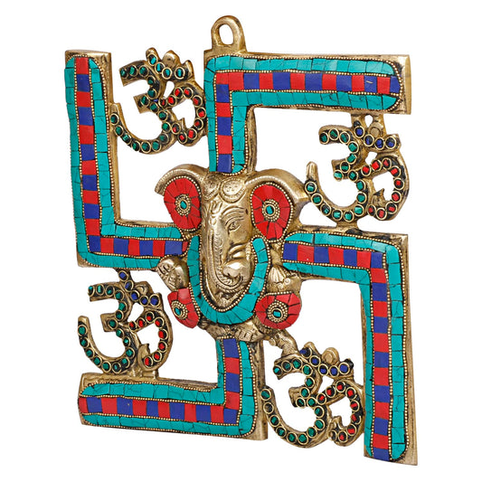 Brass Om Ganesha Swastika Wall Hanging, Brass Ganesh for Decor Entrance 8 Inch
