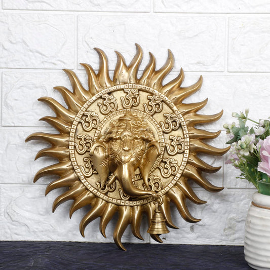 Brass Om Sun Ganesha Ganesha Wall Hanging for Home Office Entrance Puja Gift 11 Inch.