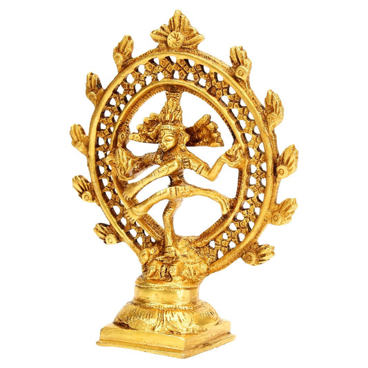 Brass Natraja Statue Idol of Lord Shiva Ji Dancing Natraj Murti for Temple Mandir Home Decor Gift 6 Inch Gold
