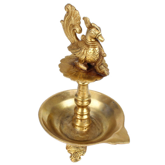 Brass Peacock Diya Oil Lamp Diyas Ideal for Home Decoration Temple Gift Gold Color 1.5 Kg. 9 Inch.
