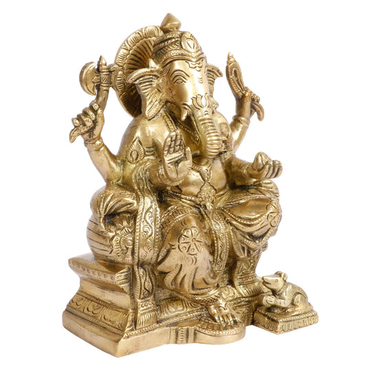 Brass Sitting Ganesha Idol In Multicolor Height 9 Inch Weight 1.8 Kg