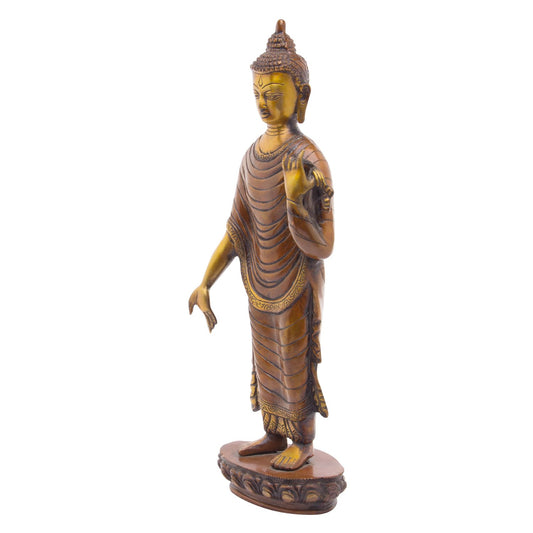 Brass Standing Buddha Offering Protection Height 15 Inch Weight 3.2 Kg Color Brown