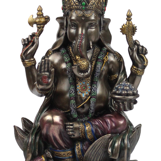 Resin Sitting Ganesha Idol Mangalkari Ganpati Murti In Multicolor Height 7.Inch