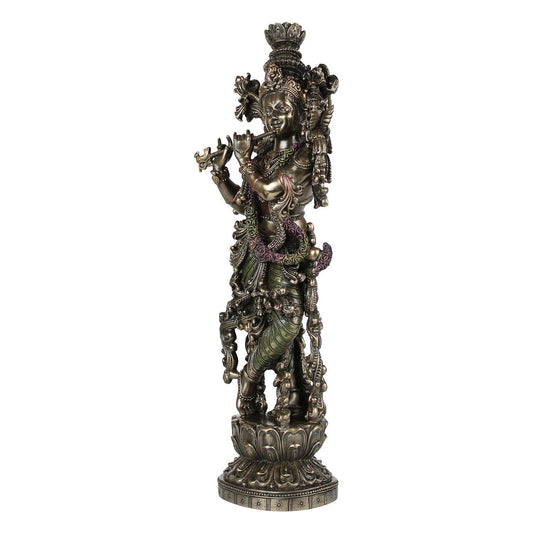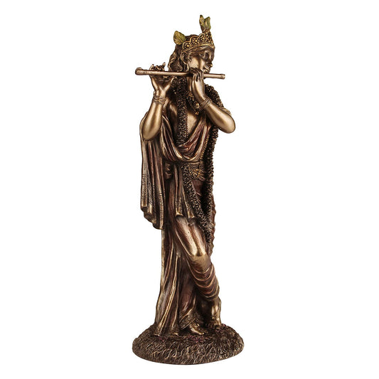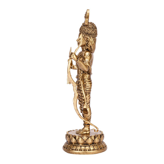 Resin Idol Krishna Bhagwan Murli Kishan Murti Playing Bansuri Height 15 Inch Weight 1.5 Kg Color Antique
