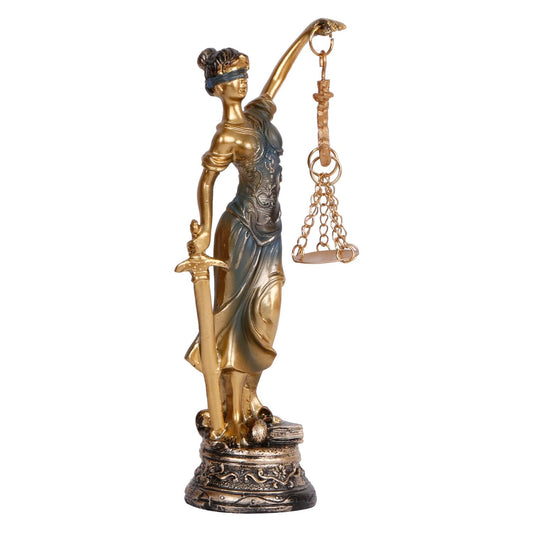 Resin Justice Lady Of Law And Equality, Standing At A Height Of 7.5 Inches, Is A Multicolored Figurine.