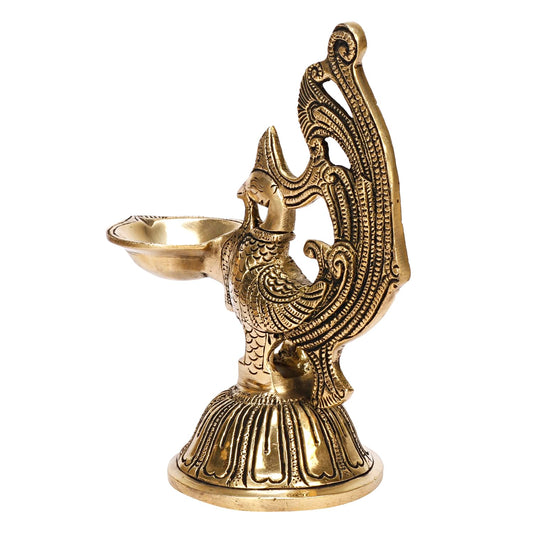 Savrup Peacock Design Brass Diya Diyas for Temple Puja Home Decoration Housewarming Gifts Size 7 Inches, Gold Color
