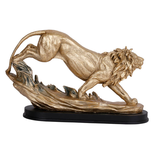 SVARUP Animal Lion Sculpture Statue Handcrafted Decorative Resin Showpiece Idol for Home & Office Decor Gold Color