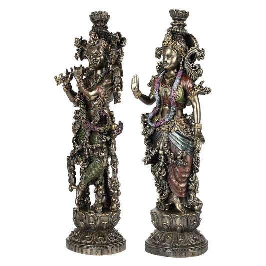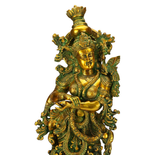 SVARUP Big Brass Radha Krishna Pair Idol Radhay Krishan Murti in Multicolor Home Decor Puja Gift Height 29 Inch