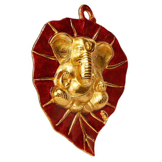 Wall Hanging Ganesha for Home Decor | Multicolor Metal Leaf Design – 3 Inch