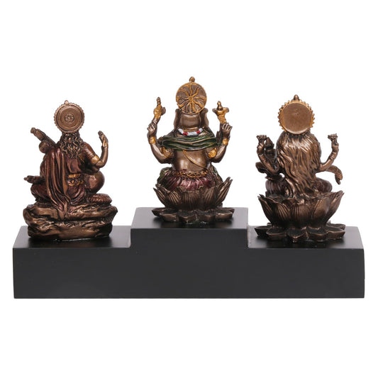 SVARUP Resin Laxmi Ganesh Saraswati Idol for Prosperity Height 4.5 Inchs Color Copper Standard 1 pcs