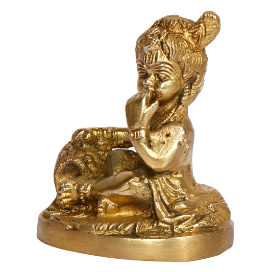 Brass Bal Gopal Makhan Chor Idol in Gold Color Height 3.25 Inch