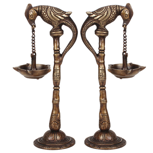 Antique Brass Diya with Parrot Design: Ideal for Traditional Puja Rooms.