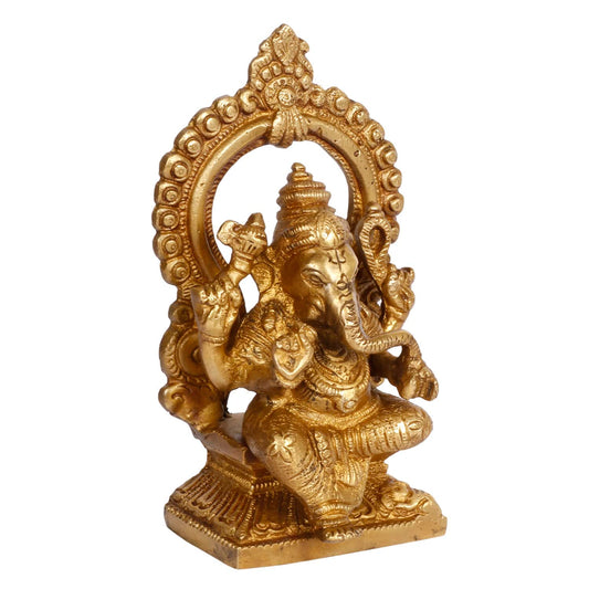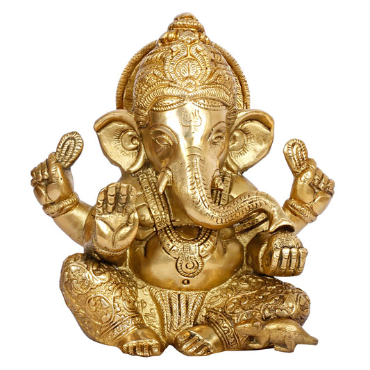 Brass Blessing Ganesha Idol In Gold Color Height 5.5 Inch Weight 1.4 Kg
