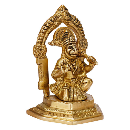Brass Bajrangbali Sankat Mochan Hanuman Idol Statue Murti Height 5 Inch Gold Color