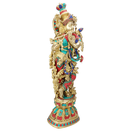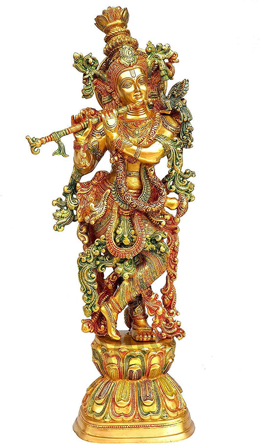 Big Brass Krishna Idol Krishan Murti in Multicolor Height 29 Inch