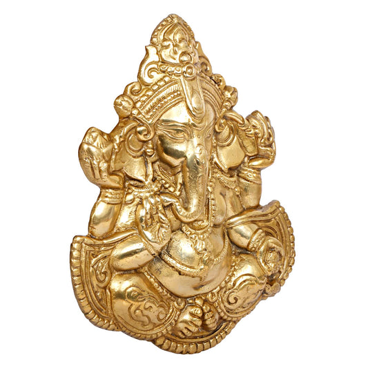 Brass Abstract Ganesha Idol In Gold Color Height 4.5 Inch Weight 0.85 Kg