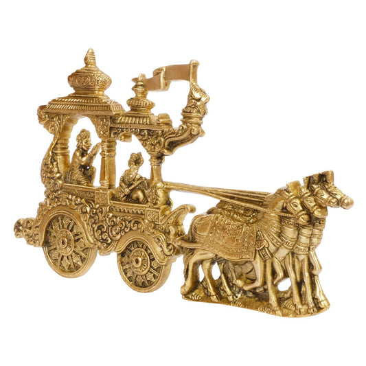 Brass Arjun Rath with Krishan Ji wall Hanging in Gold Color 13 Inch