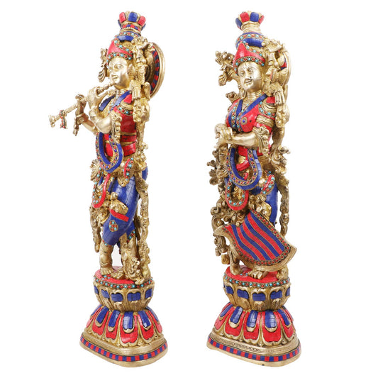Big Brass Radha Krishna Pair Idol Radhay Krishan Murti in Multicolor Height 29 Inch