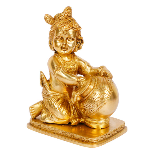 Brass Bal Gopal Makhan Chor Murti in Gold Color Height 7 Inch