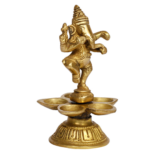 Brass Dancing Ganesh Diya for Puja Room: Handmade, Tabletop with Stand, Perfect for Home and Office Decor