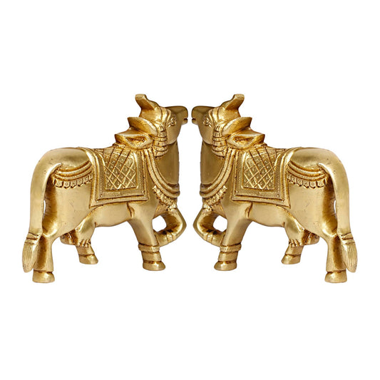 Brass Cow Wall Hanging Vastu Gau MATA Idol, Kamdhenu Cow Pair Nandi (Gold Color 5x4 Inch)