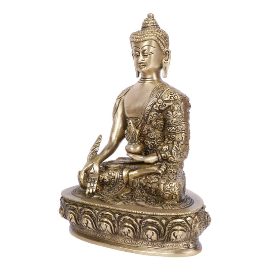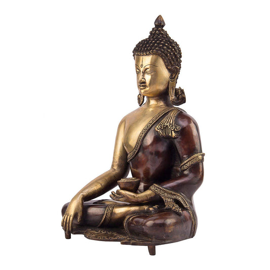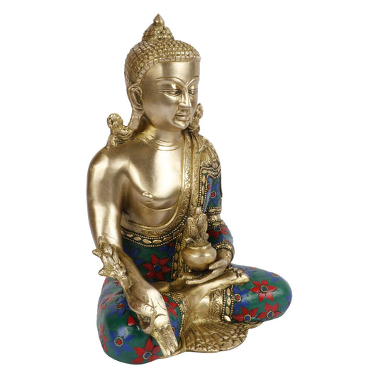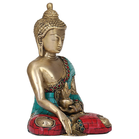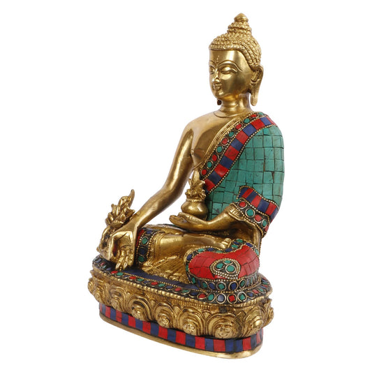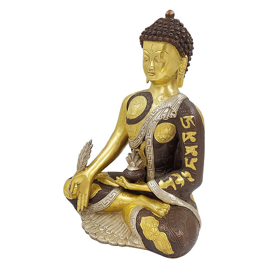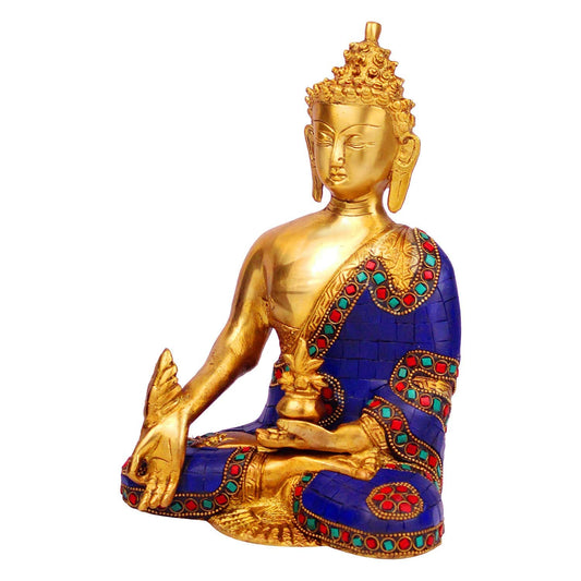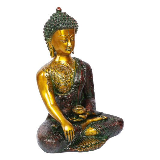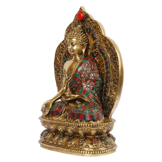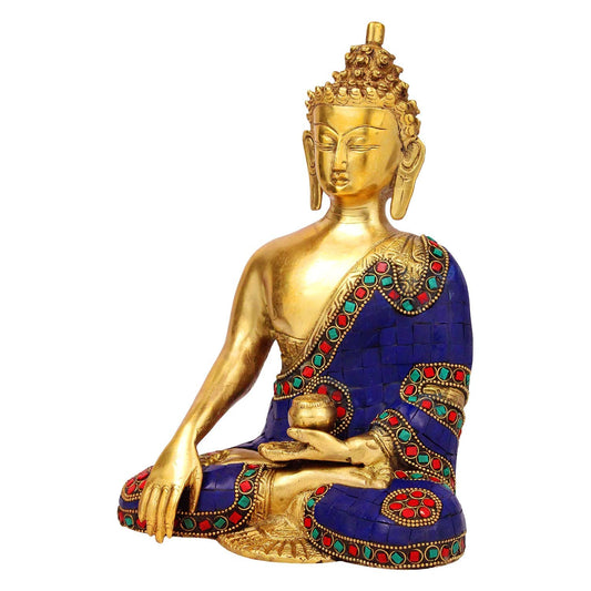 Brass Buddha Idol in Bhumisparsha Mudra Statue Tibetan Buddhist Decor Height 9 Inch Weight 2.7 Kg Mult-Color